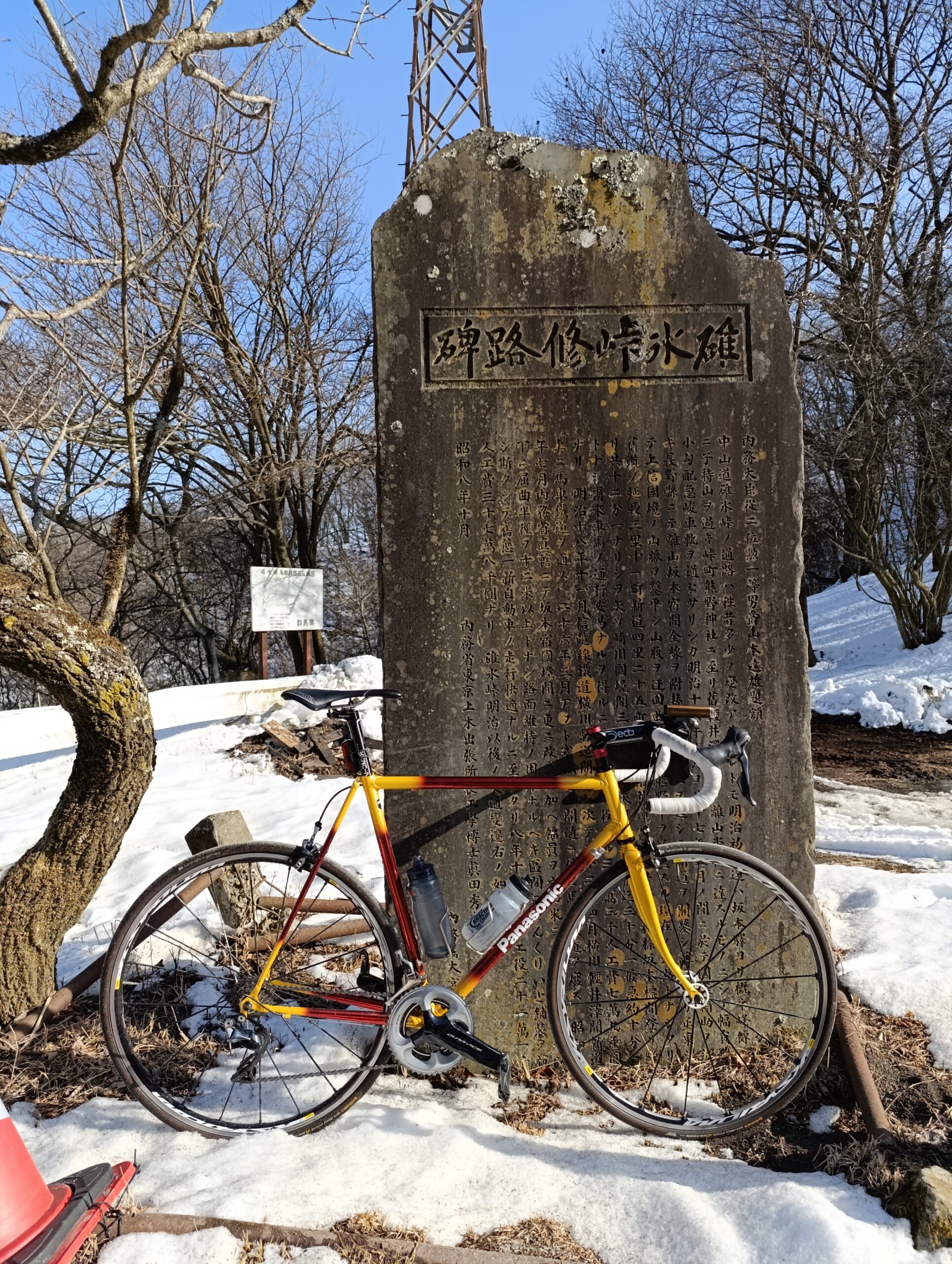 下山を開始してすぐに今度はイノシシ2頭が走っていくのを見かけました。イノシシを見るもの久々です。うりぼうではなかったのですが、成獣と言うにはまだ早い大きさで、きっと兄弟なのでしょう。昼間から走り回ってるというときっと遊んでいるのでしょう。水たまりを見て遊びたがるのは人間の子供も同じですからね。降った雪が溶けだす中で泥まみれに走る姿はいかにも猪らしいです。自然の中にサイクリングに出かけると思いがけず野生動物に出食わすのもサイクリングの醍醐味ですね。