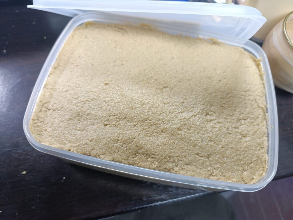 私の場合、3.2リットル容器で糠床を作っていますから、2リットルの容器でぬか漬けセットのお土産を作ると3分の2近くの糠床を使ってしまいます。