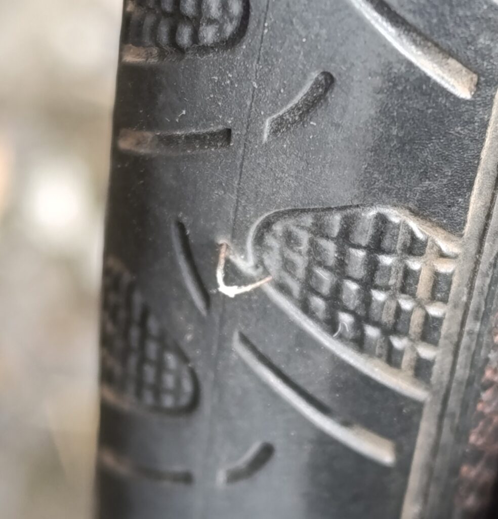 まさかのコンチネンタルグランプリ4シーズンでのパンクです。グランプリ4シーズンは今まで5年近く使ってきて1度もパンクしたことがありませんでしたのでこれは驚きでした。しかも、今使っているタイヤは使い始めてからまだそれほど距離を乗っていません。