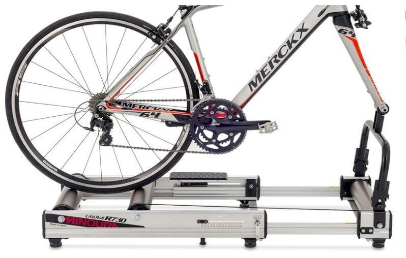最初は最大限に静音性を追求したAbsorb Roll R820A を考えていたのですが、価格が10万円程になるので躊躇しました。そこで選んだのがLive Roll R730Rです。ミノウラの3本ローラーの中では一番最近リリースされた製品のようで(2023年発売)、しかも負荷を加えることができます。もともと名称がほとんど同じLive Roll R730というモデルがあったのですが、それには負荷装置はついていません。負荷機能を付けてリリースされたものが Live Roll R730R というわけです。そして、もう一つのメリットはR730Rのローラーには静音効果がある表面加工がされていることです。一見して分かる違いは静音加工されているR730Rのローラー表面は黒色で静音加工無しのR730のローラーの表面はシルバーです。もともと負荷機能より静音性を優先していましたが、ある程度の静音性が確保される上で負荷機能も備わっており、AbsorbRoll R820A の半額くらいの値段で購入できる点でこちらを導入することにしました。