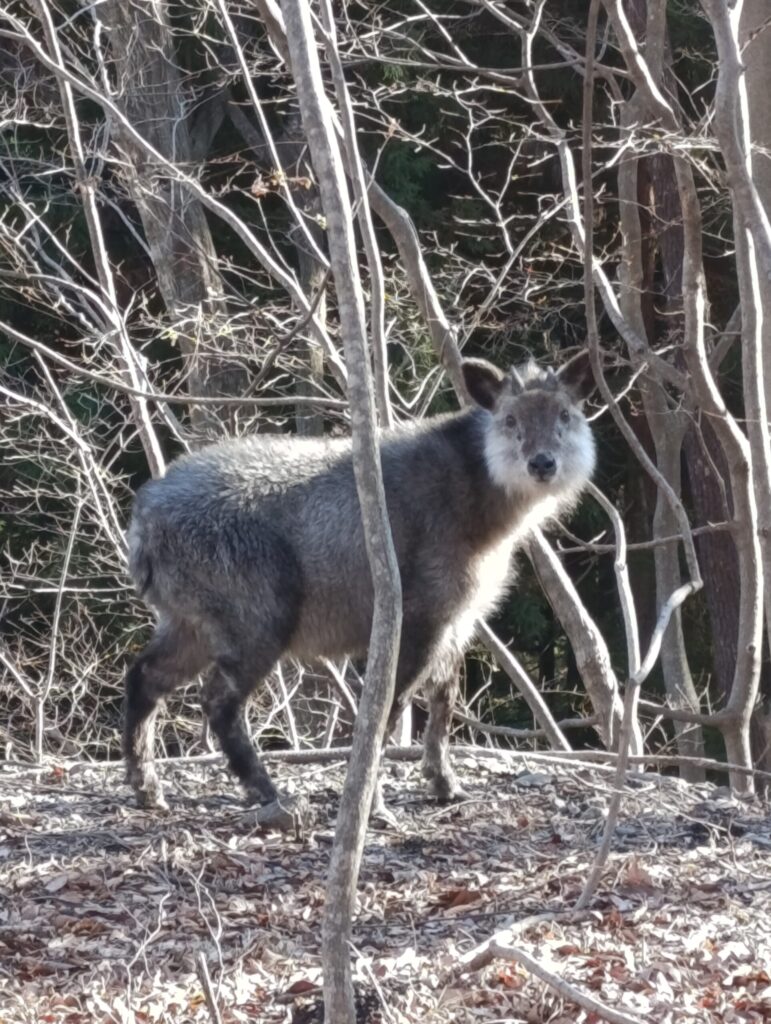 後姿が猿に見えてしまいますが同じカモシカです。山の急斜面を平気で移動しますから、脚の動きも牛や馬などとは違うのかもしれません。