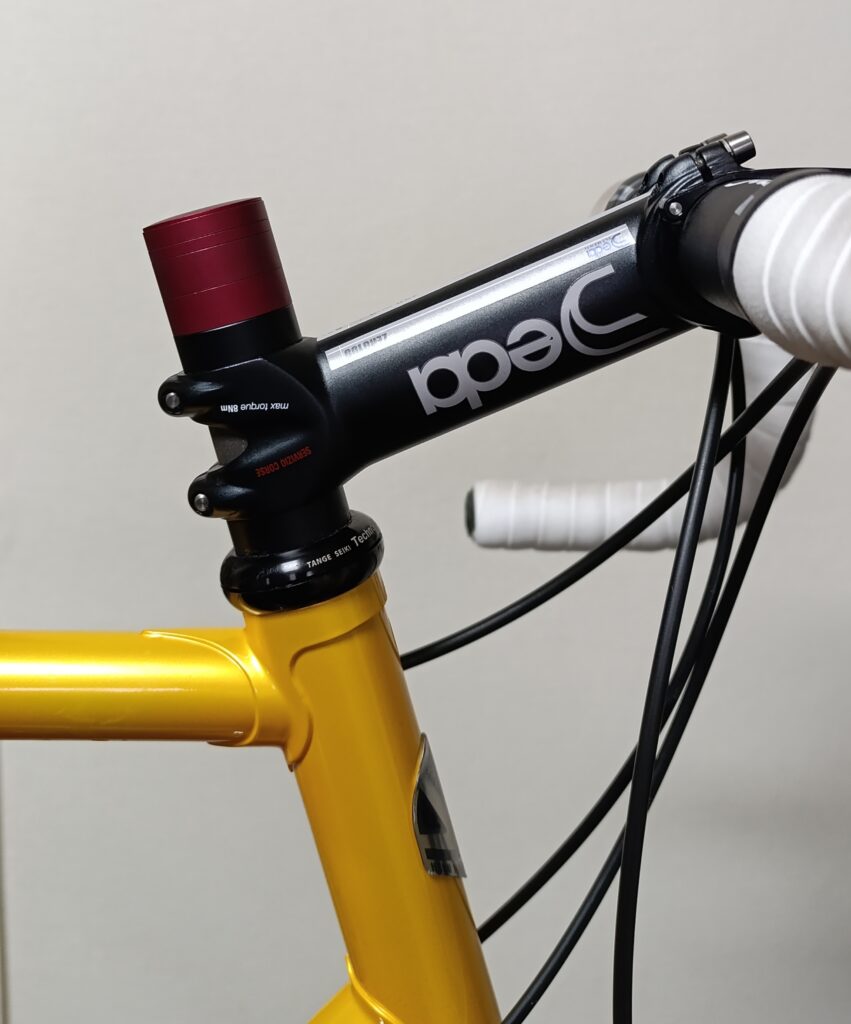 ちなみに、ステムとフォークがさらに近づいたことで、さらにハンドル剛性が上がってしまうはずです。キシリウムホイール、コロンバスマックスフォーク、カイセイ8630ヘッドチューブ、そして、2014アルミのデダゼロ100ステム、7075アルミのデダゼロ100ハンドル、ほぼ最強クラスの金属剛性です。