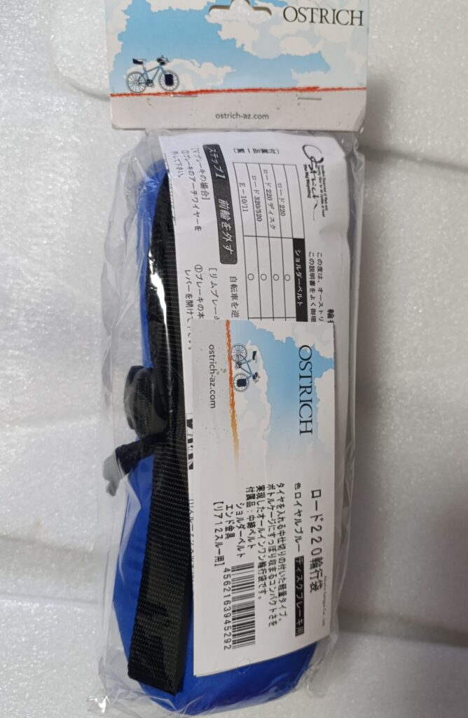購入したロード220を見て驚いたことは28年前の輪行袋とベルトに使う素材が全く同じだったことです。デザインまで同じです。四半世紀以上たっても変わってないという点に驚きでした。