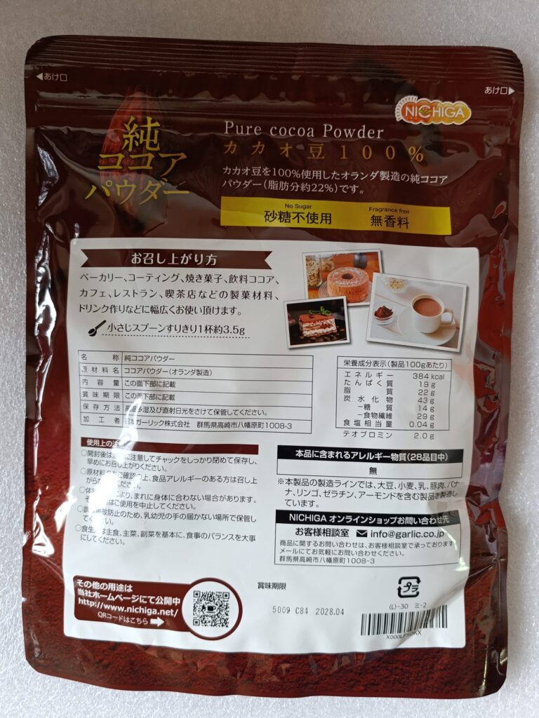最初の頃に使っていたのはバンホーテンの缶入りのピュアココアパウダーでしたが、現在もう少し容量が多い500g入りのパックをネットで購入しています。私が使っているのはNICHIGAのピュアココアと言う商品なのですが、容量的にも価格的にも丁度良いと感じています。