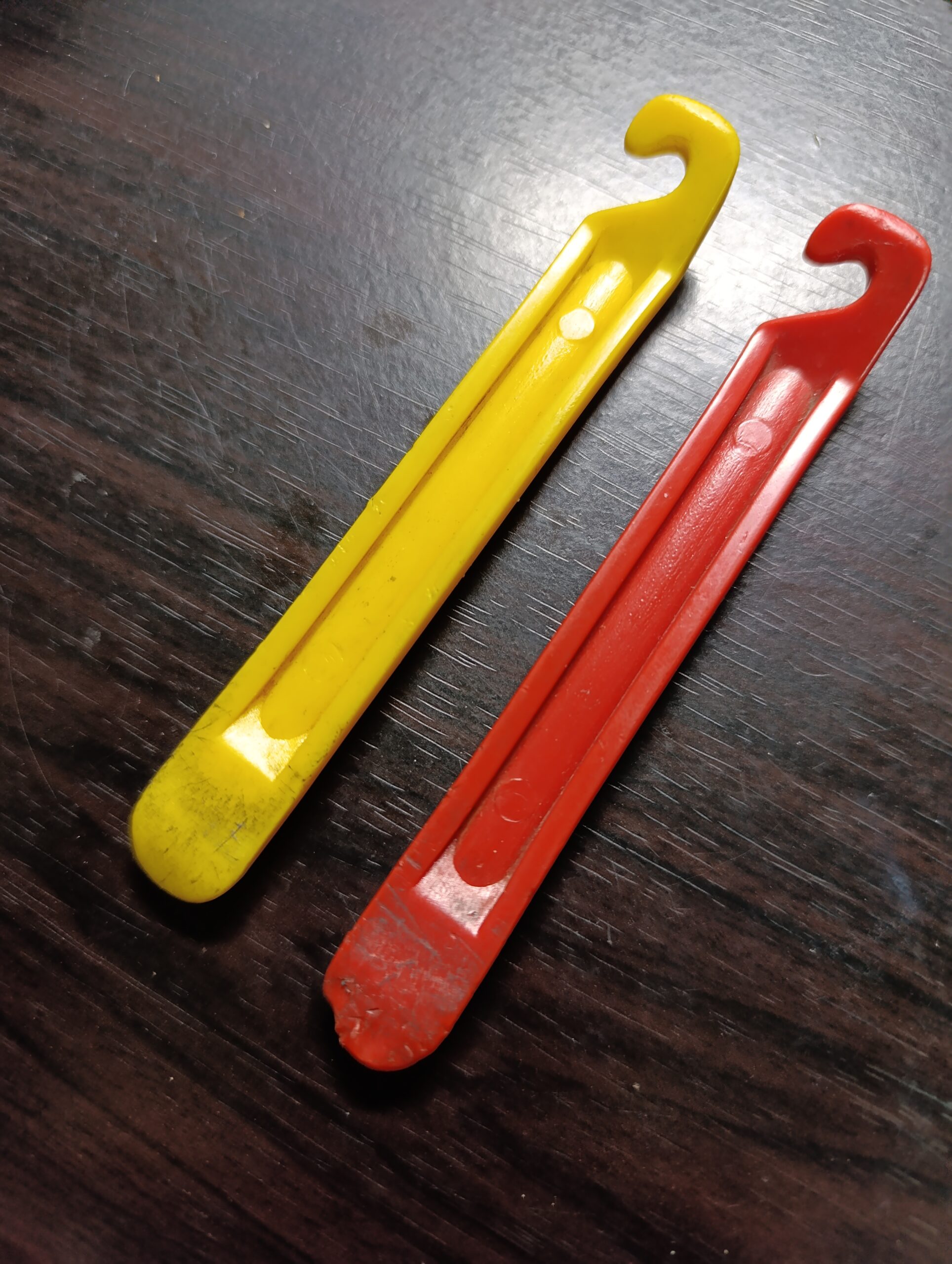 今までの自転車人生の中で行ったすべてのパンク修理やタイヤ交換はすべてこのタイヤレバーで行ってきたわけです。樹脂製でタイヤ交換セットとしてせいぜい500円程度で販売されていたものではないかと思うのですが、改めて今まで長く使ってきたなあと思います。