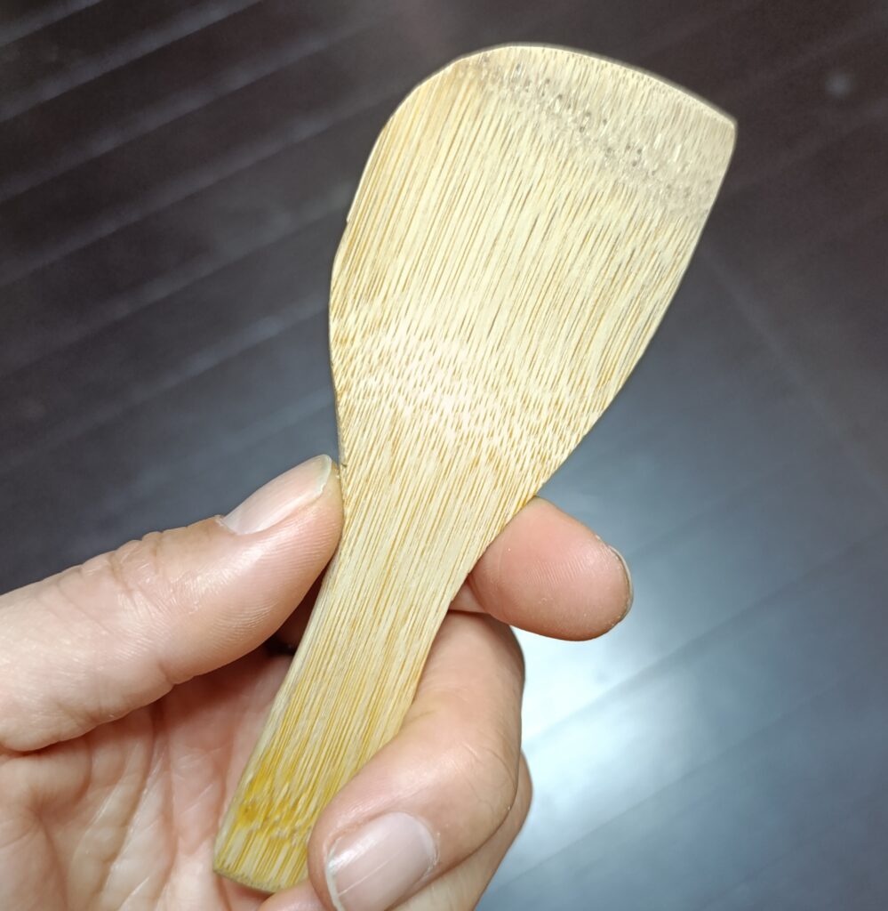 これは無ければなくても良いものですが、数年前に武蔵御岳神社を訪れたときに利用した売店でお店の方からお土産にといただいたものです。毎回味噌汁をひとヘラ分取り出すのに重宝しています。